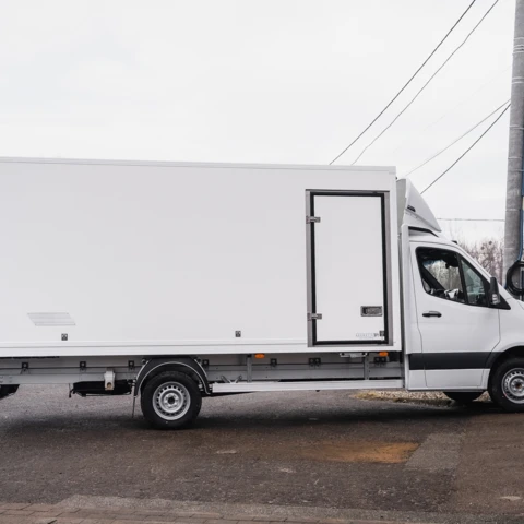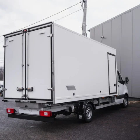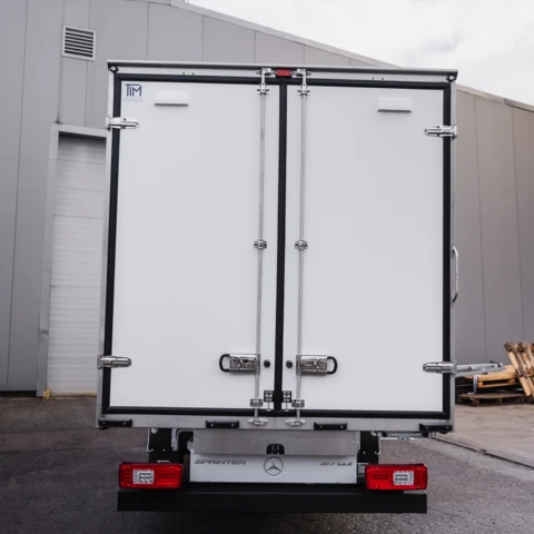 Leichter, isolierter Isothermaufbau aus GFK-Sandwichpaneelen (XPS oder Polyurethan) mit einer Stärke von 40 mm, vorbereitet für den Einbau einer Kühlanlage.