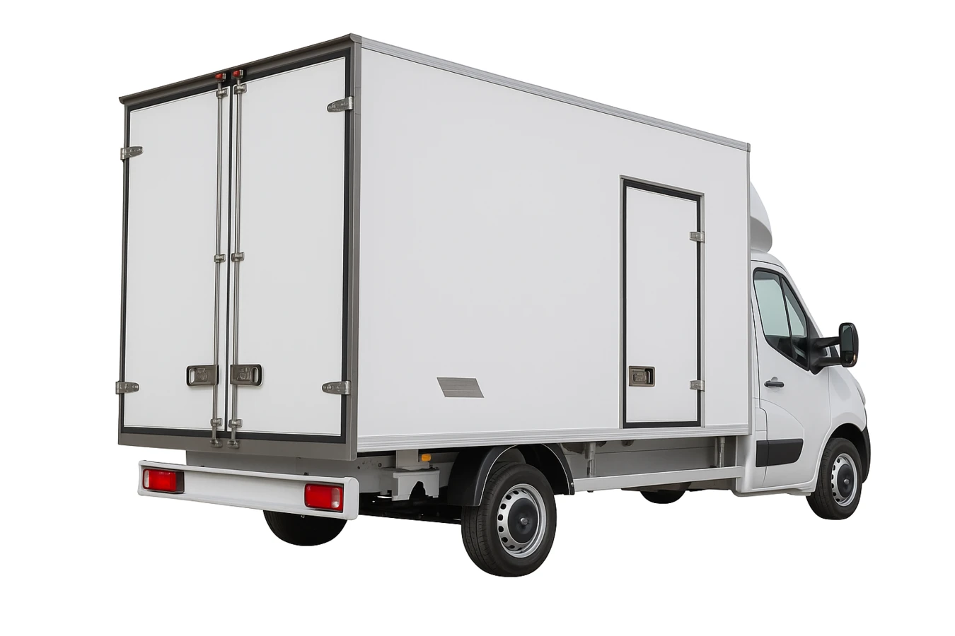 isolierte Doppeltüren hinten mit Portalrahmen, Fanghaken und Edelstahlschlössern